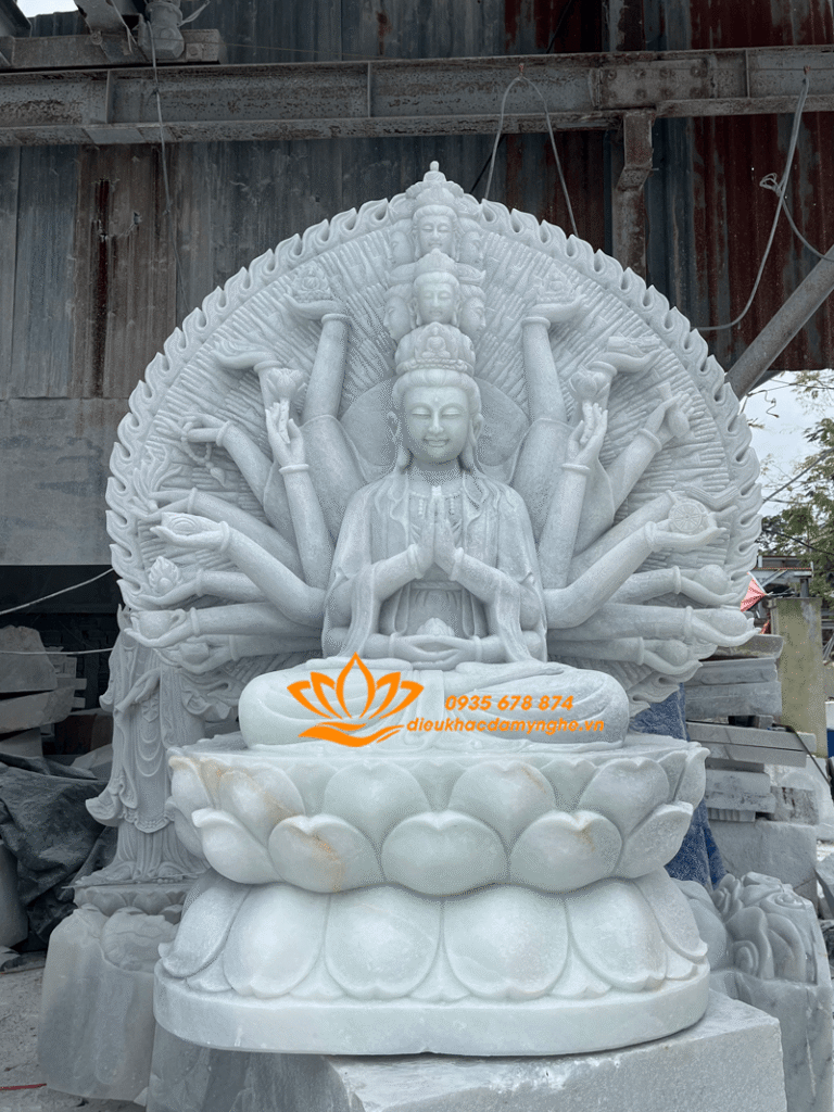 Tượng Phật Thiên Thủ Thiên Nhãn bằng đá trắng mịn giá tốt